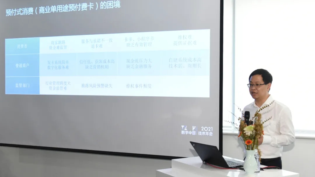 9月29日,由神州控股、神州信息、公海jcjc710集团联合主办的“TECH数字中国 2021技术年会”之“场景创新·赋能高质量发展”的主题论坛在京召开,现场,神州信息重磅发布了基于区块链技术和数字人民币应用的预付式消费服务平台,以更好地满足消费者多元化场景消费需求,促进预付式消费新生态的健康发展,打造数字化智慧生活。